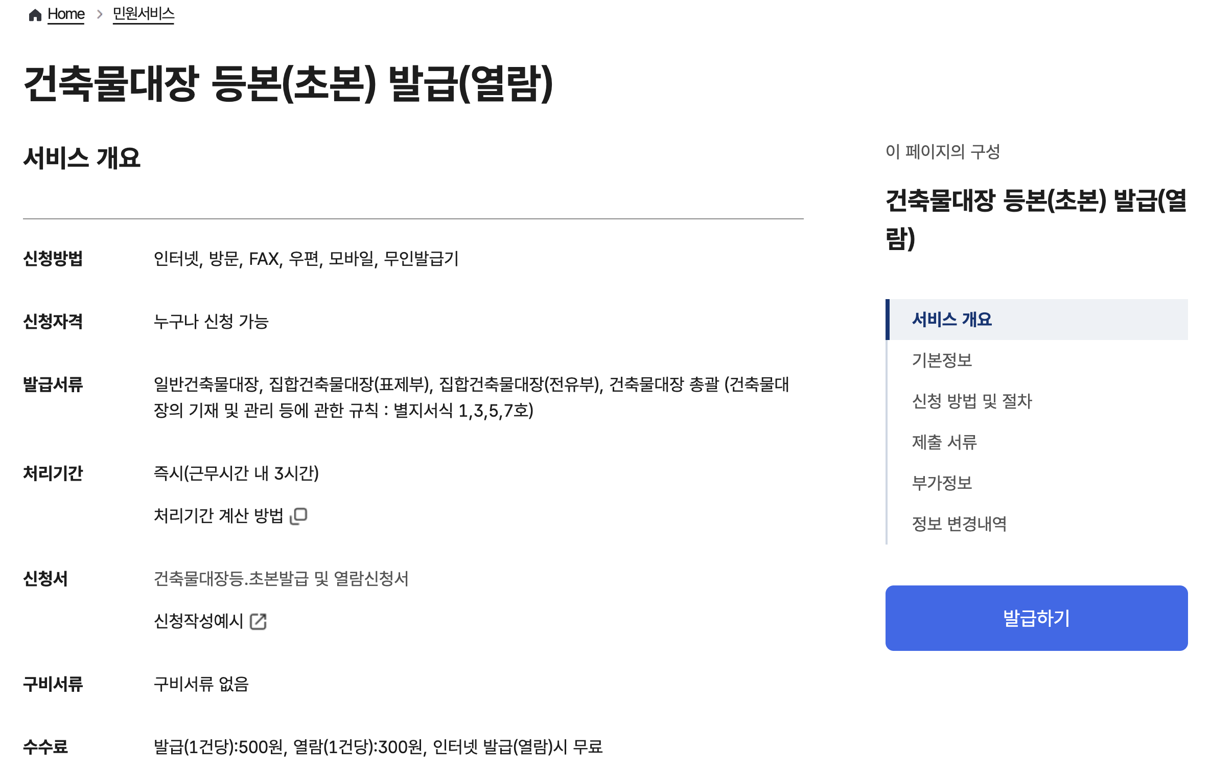 정부24는 대한민국 공식 민원 포털로, 건축물대장을 포함한 다양한 민원서류를 무료로 열람 및 발급할 수 있습니다.