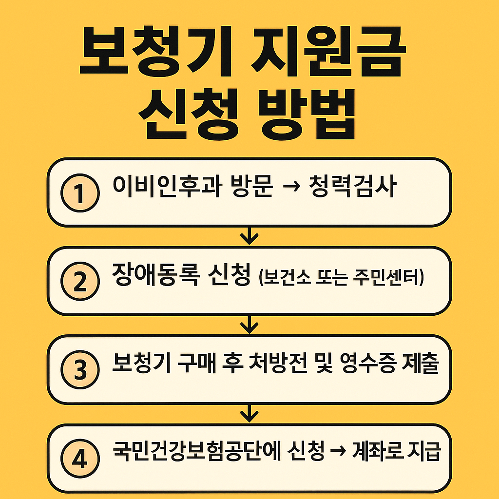 반드시 이비인후과에서 청력검사 → 처방전 발급 → 지정업체에서 구매 순서를 지켜야 지원금 수령이 가능합니다.