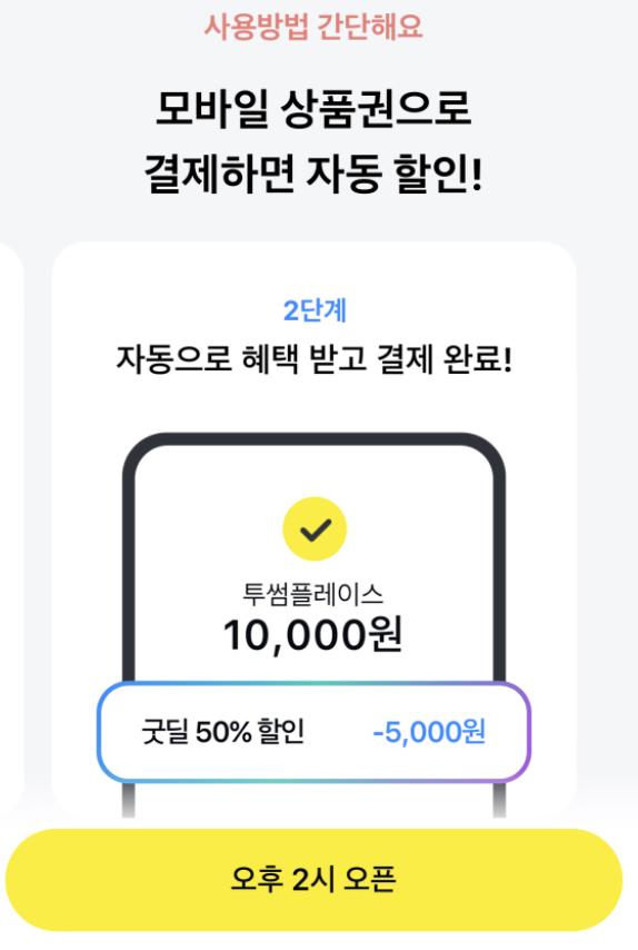 | 결제수단 | 카카오페이 ‘굿딜’ 모바일 상품권 결제 시 자동 적용 |