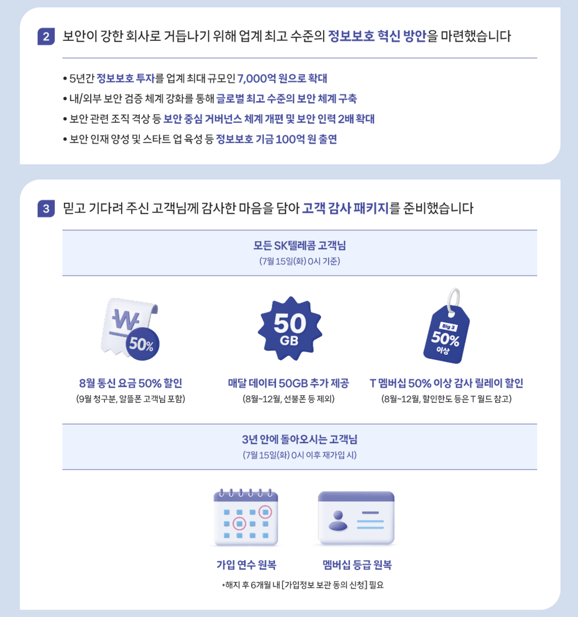 T멤버십 혜택 강화 & 재발 방지 보안 대책