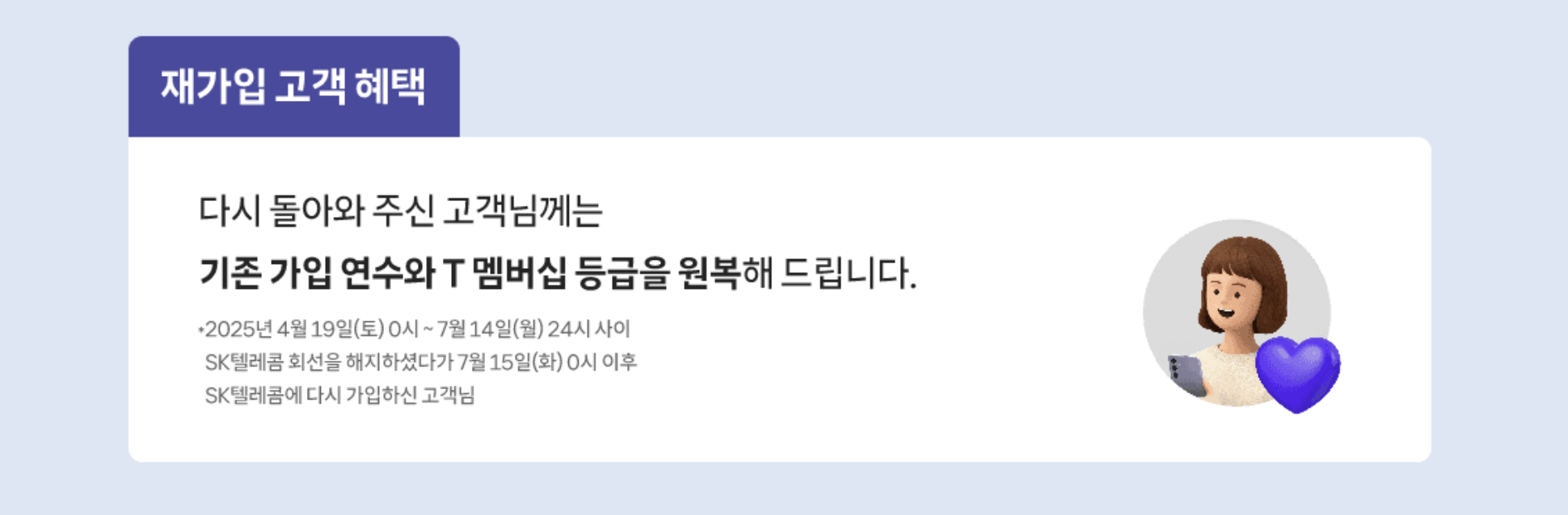 - 위 기간 내 해지한 고객이 3년 내 재가입 시: